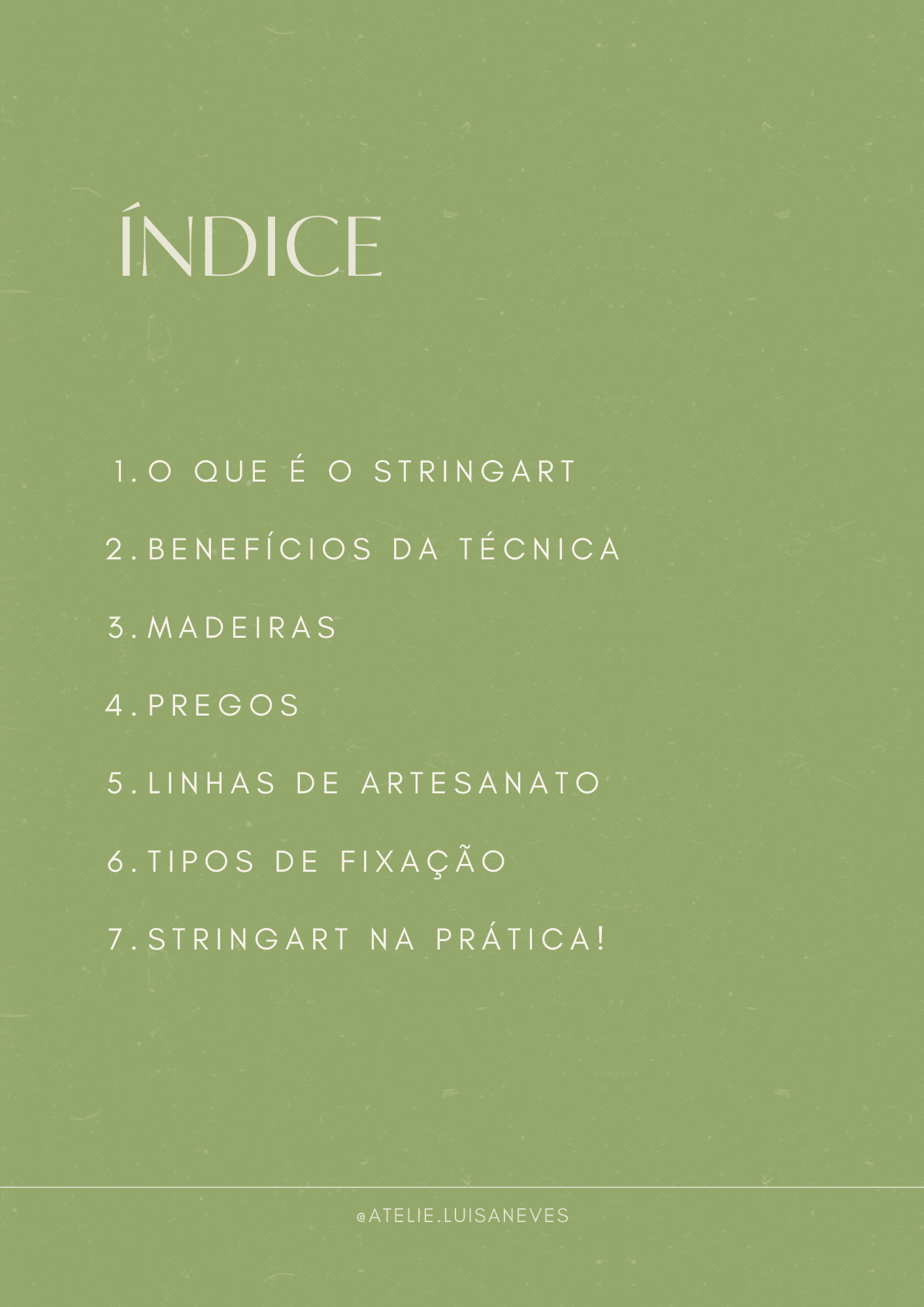 Nem sempre é fácil ter ideias do que produzir e como começar no StringArt. Por isso, desenvolvi esse PDF no objetivo de facilitar o aprendizado da técnica, com moldes já dimensionados e com a marcação dos pregos, para as pessoas que querem iniciar no artesanato.